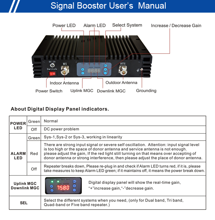 Os usuários podem escolher o ganho e o sistema de trabalho pelo painel digital LED.